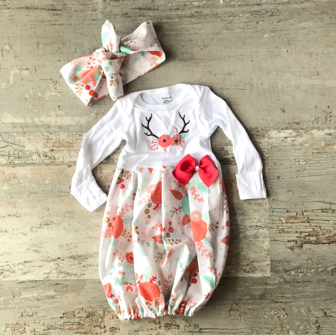 Floral Gown w/ Monogrammed Deer Antlers, includes Turban