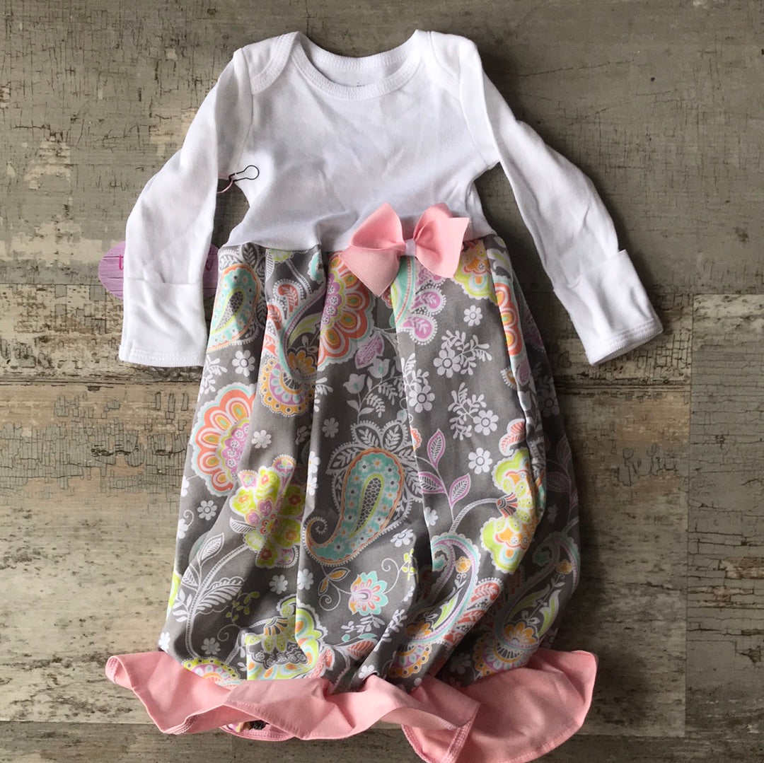Oh Yay Paisley Layette Gown w/ Ruffle