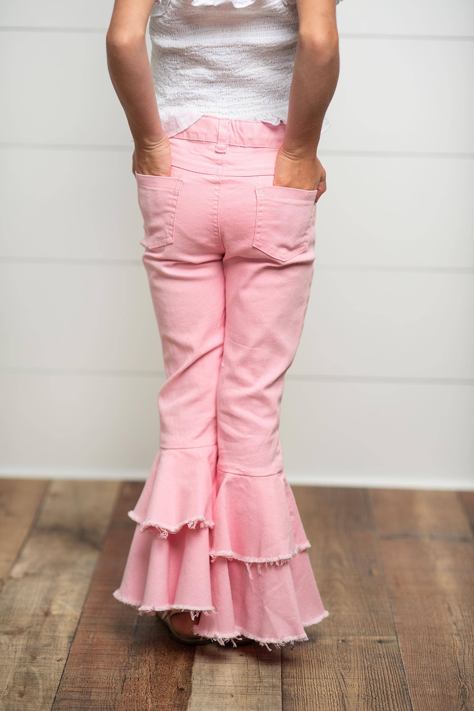 Oopsie Daisy - Kids Light Pink Distressed Denim Double Ruffle Pant Jeans