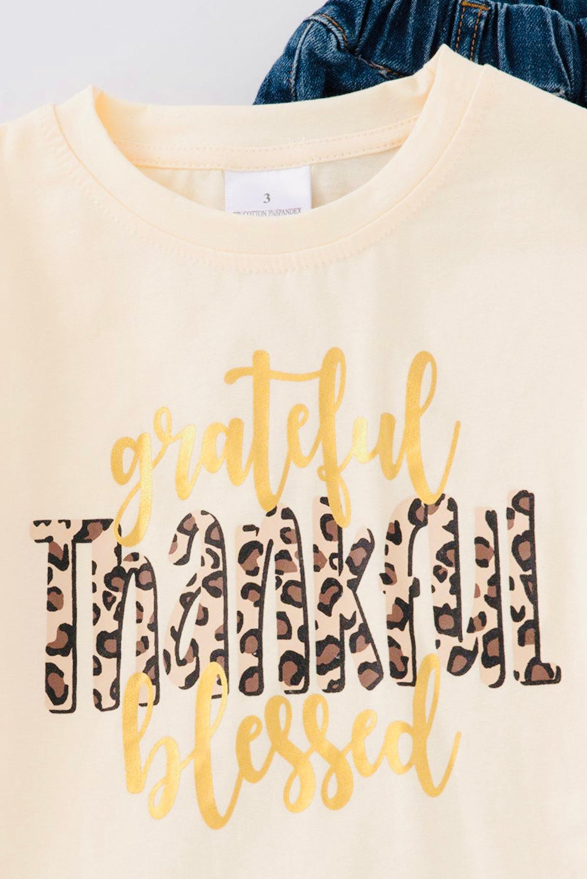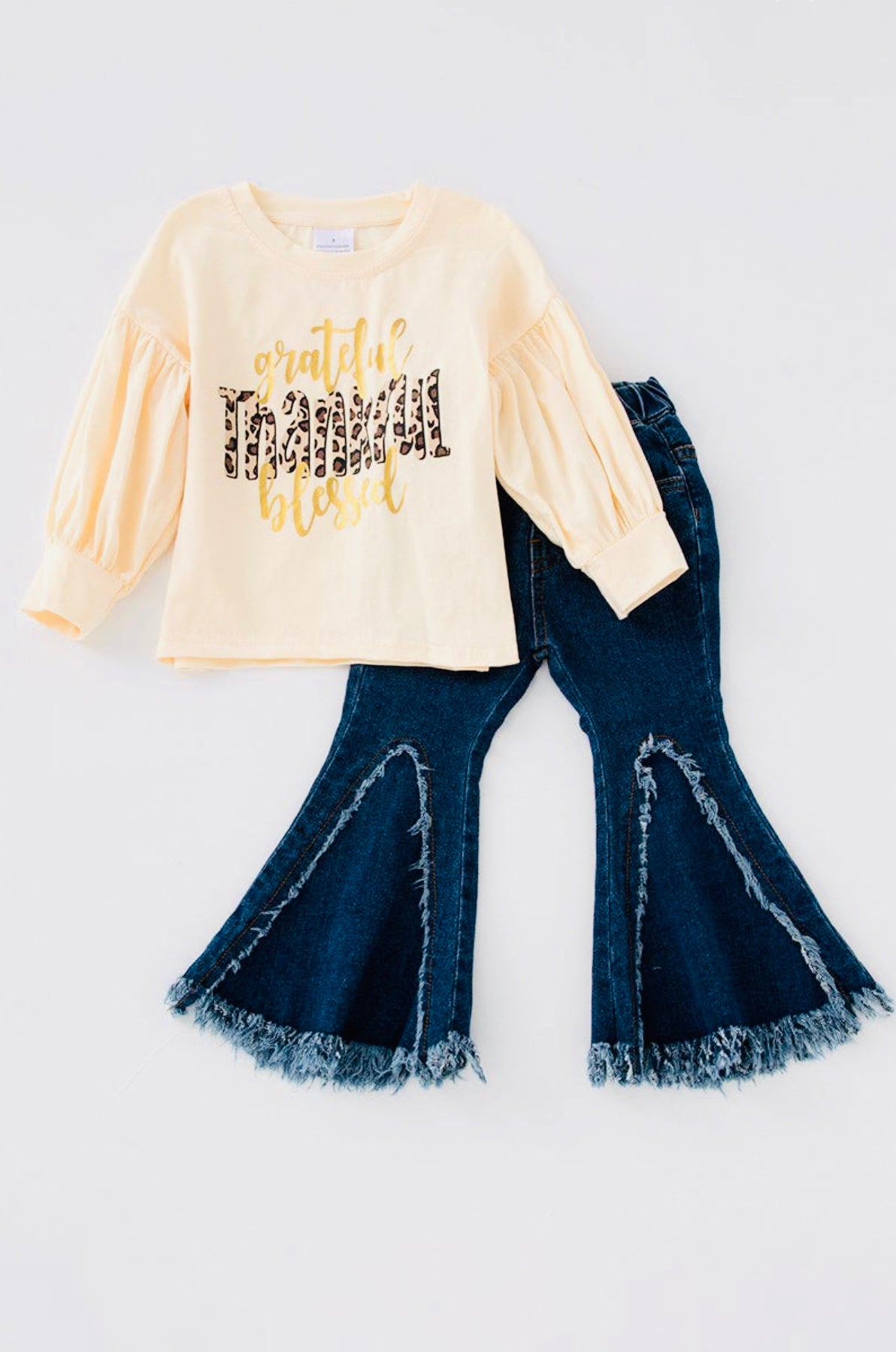 Thankful Print Top Bell Jeans Set