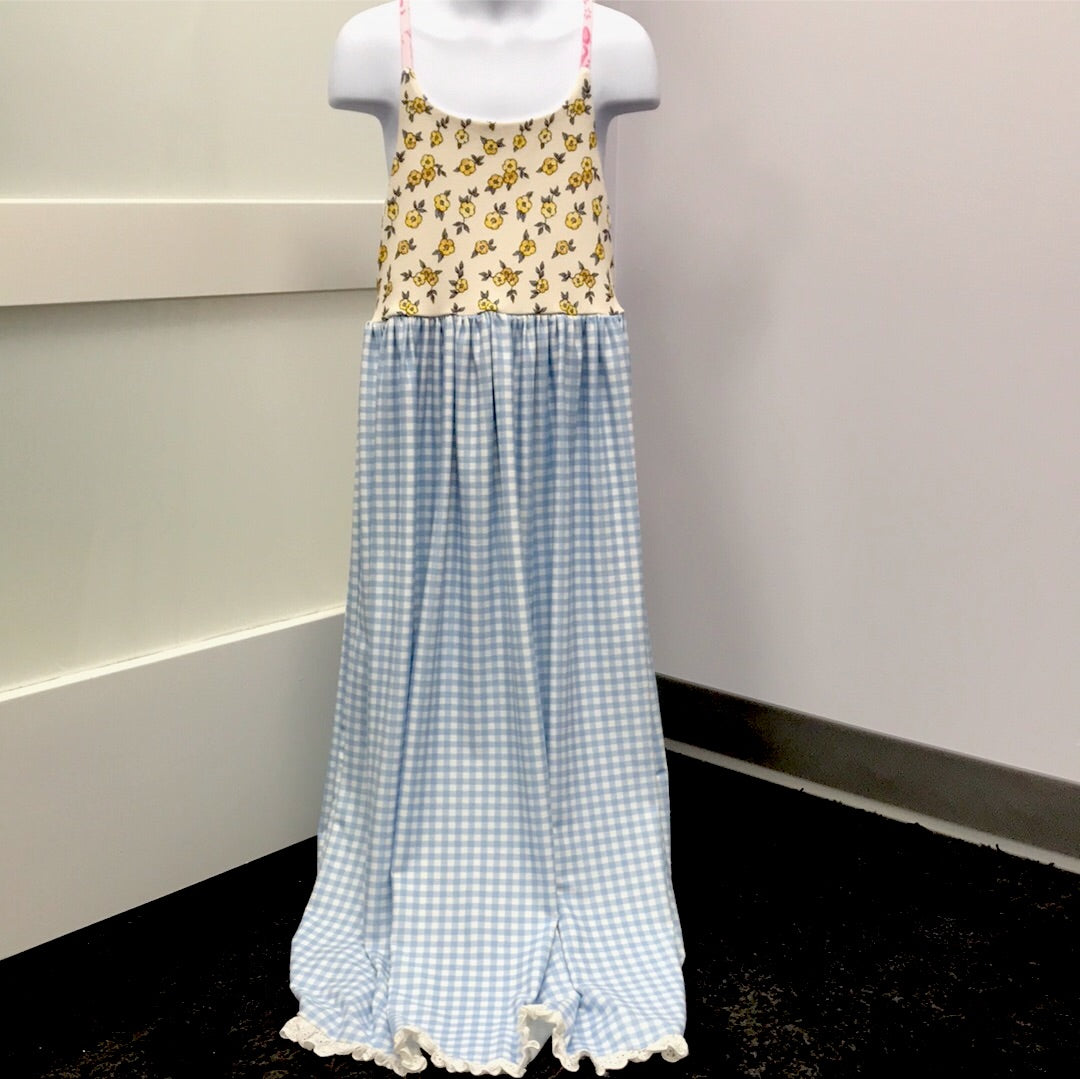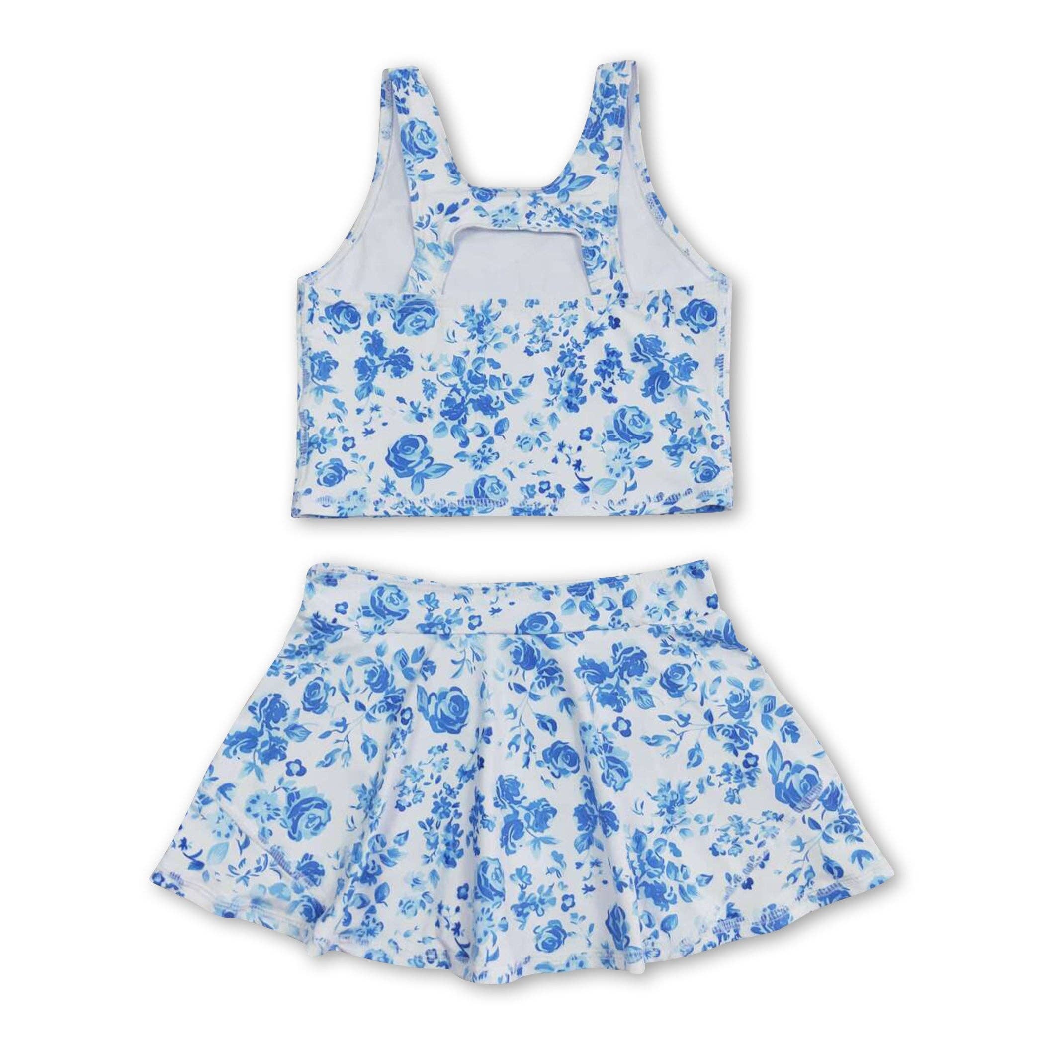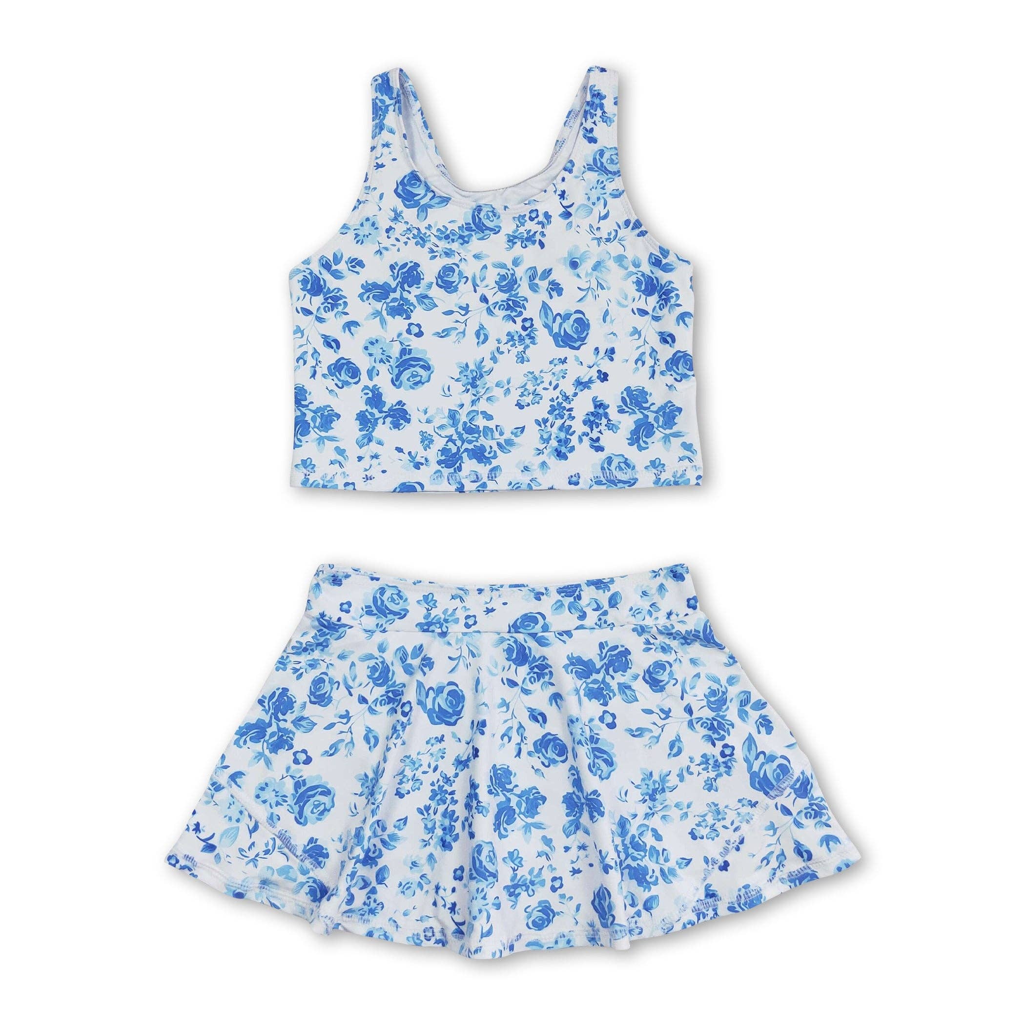 Yawoo Garments - Sleeveless blue flower top skirt girls summer clothes