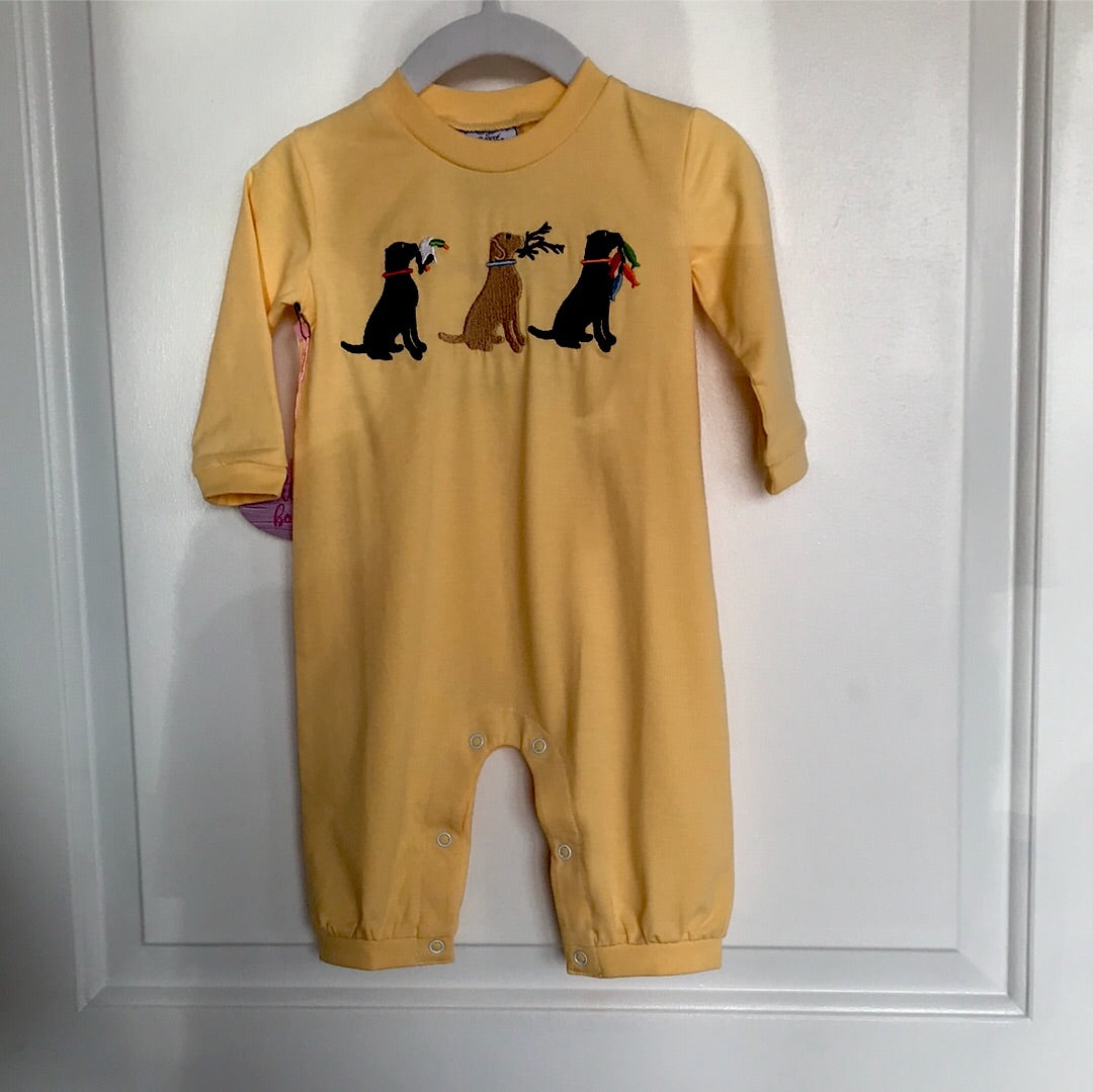 A25-4-4 Blue Dog Appliqué Boy Romper