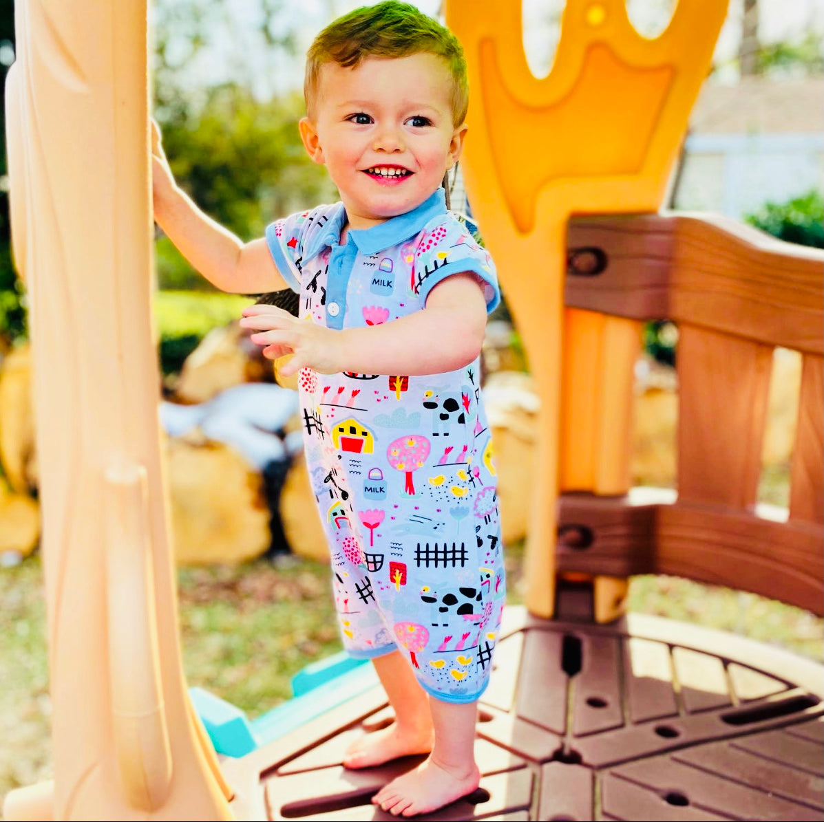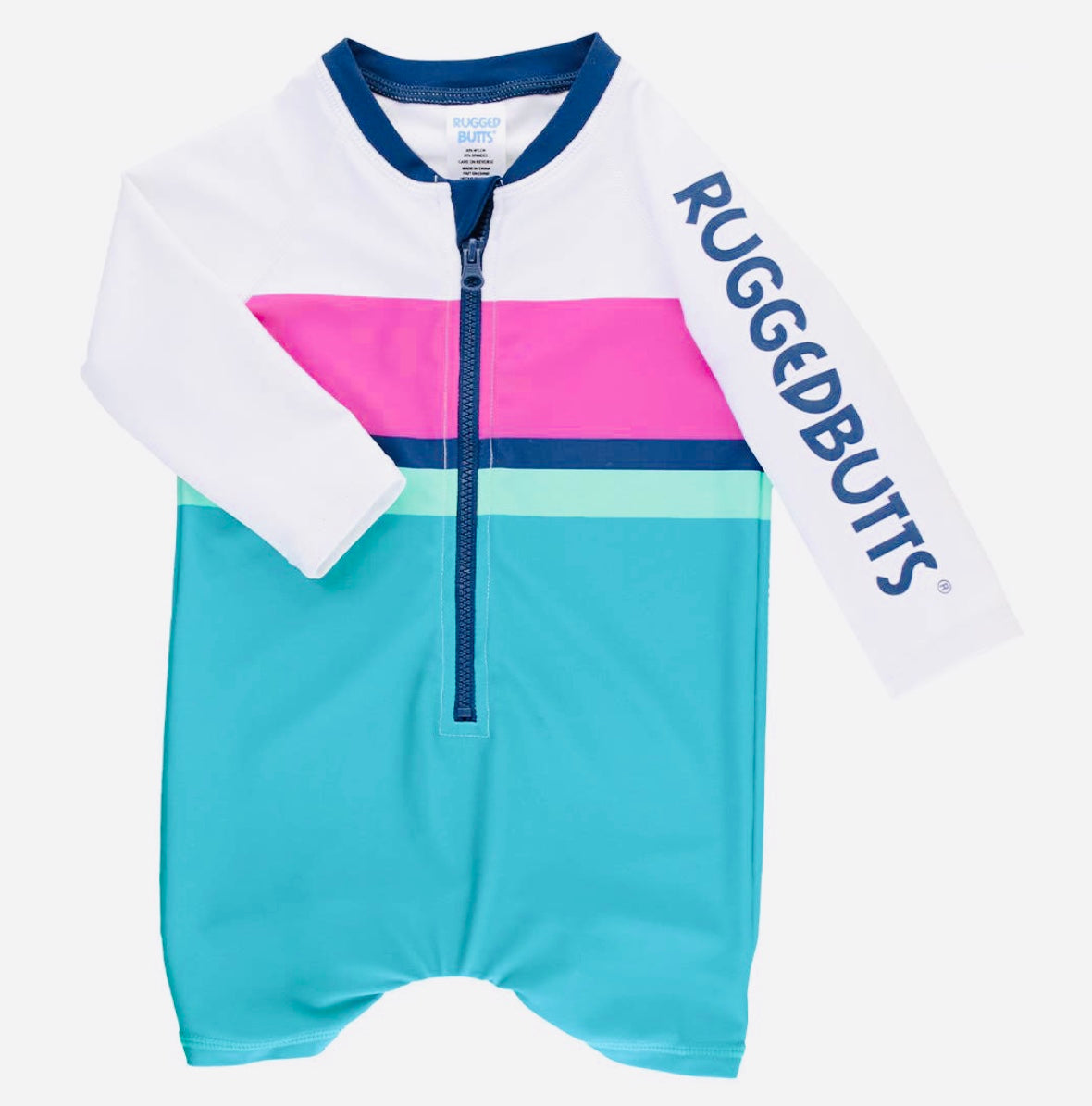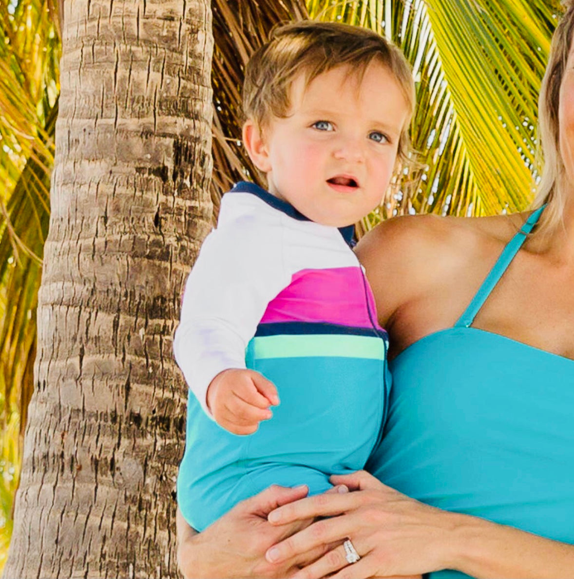 Boys Aqua Color Block Long Sleeve One Piece Rash Guard
