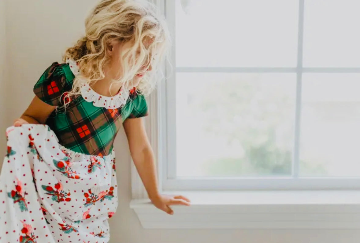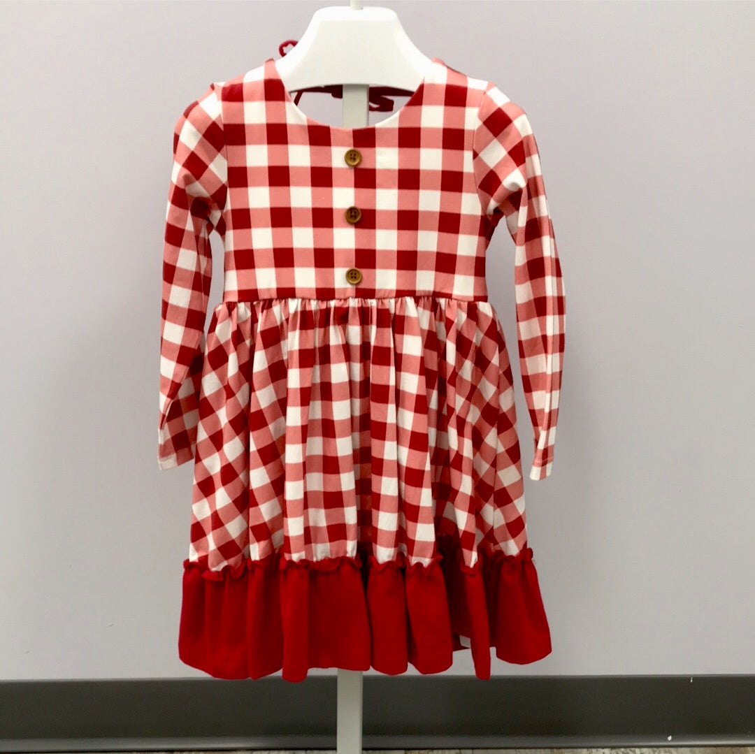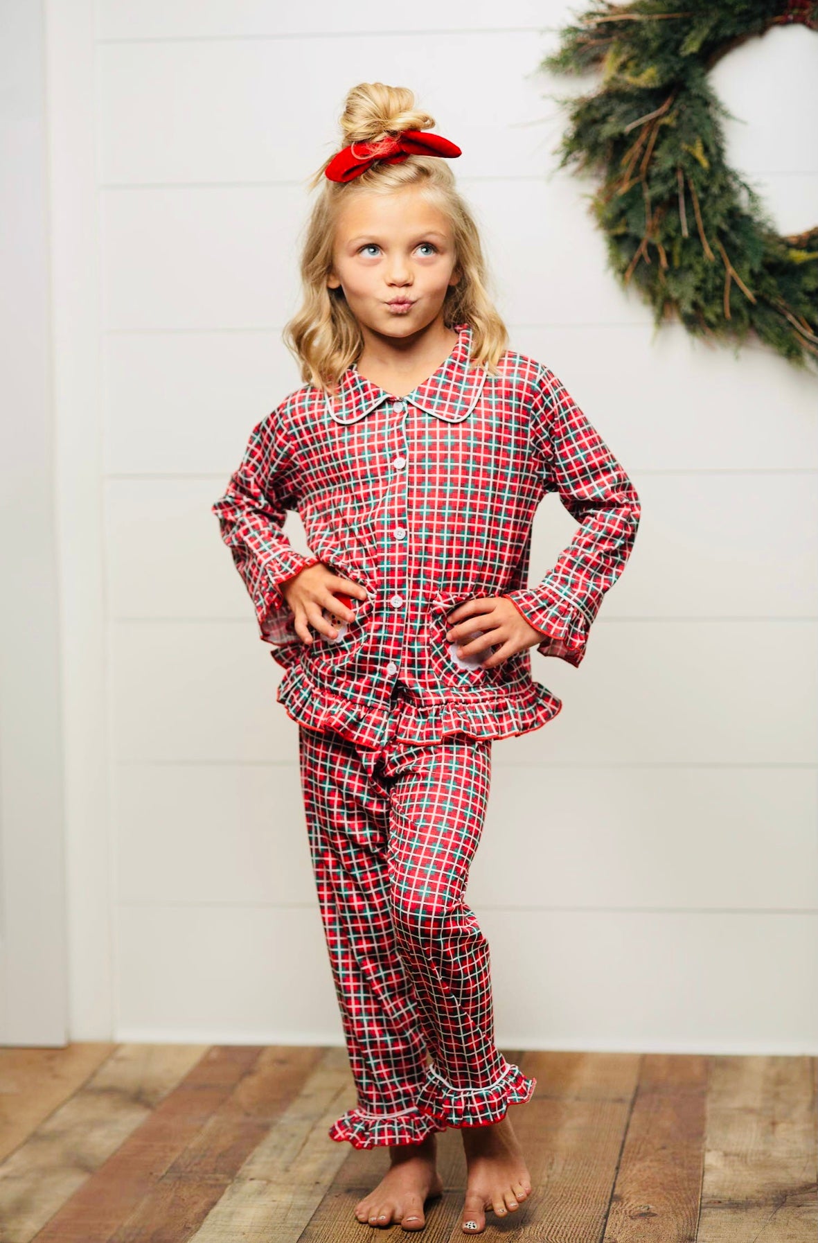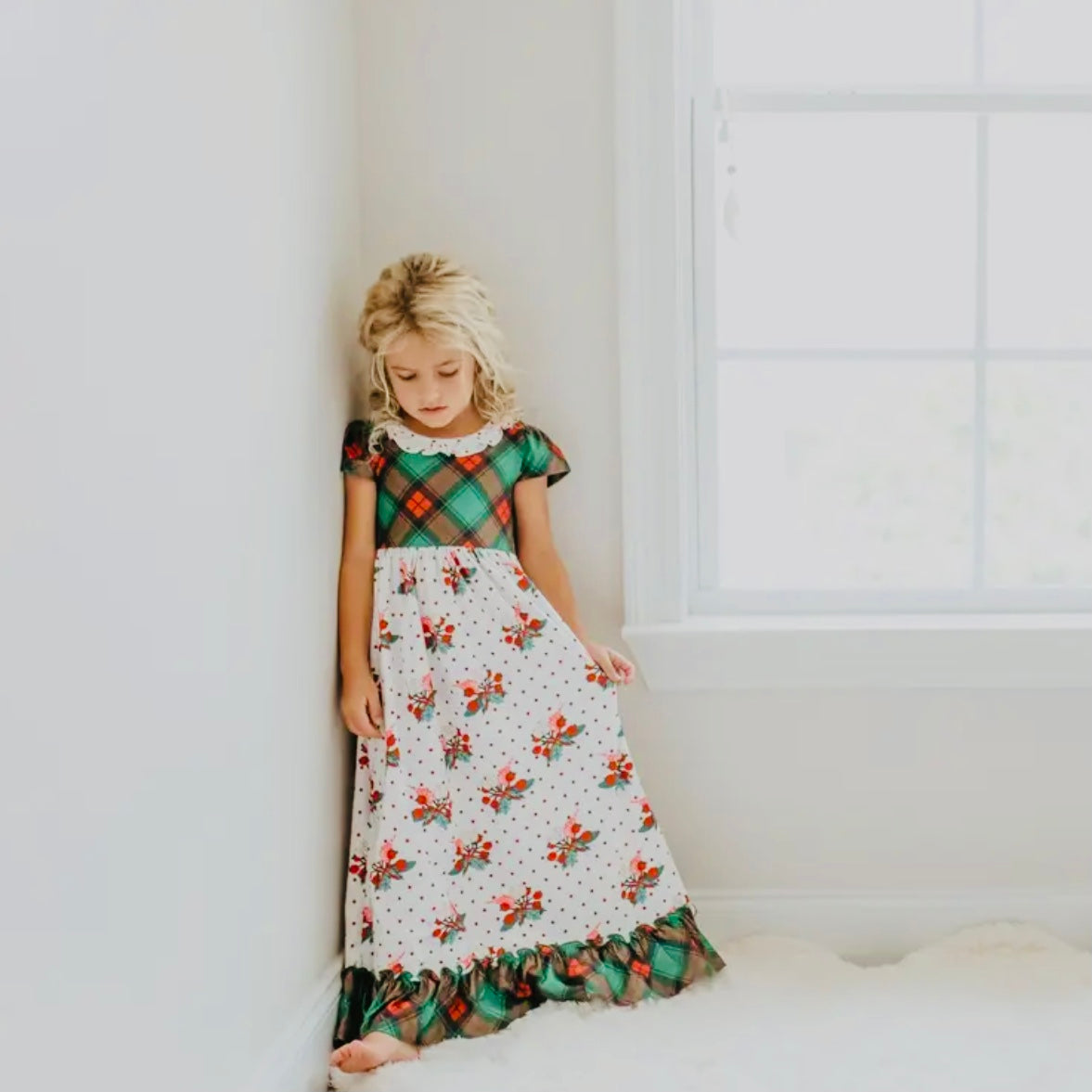 Kids Red Plaid Holly Print Holiday Christmas Lounge Gown