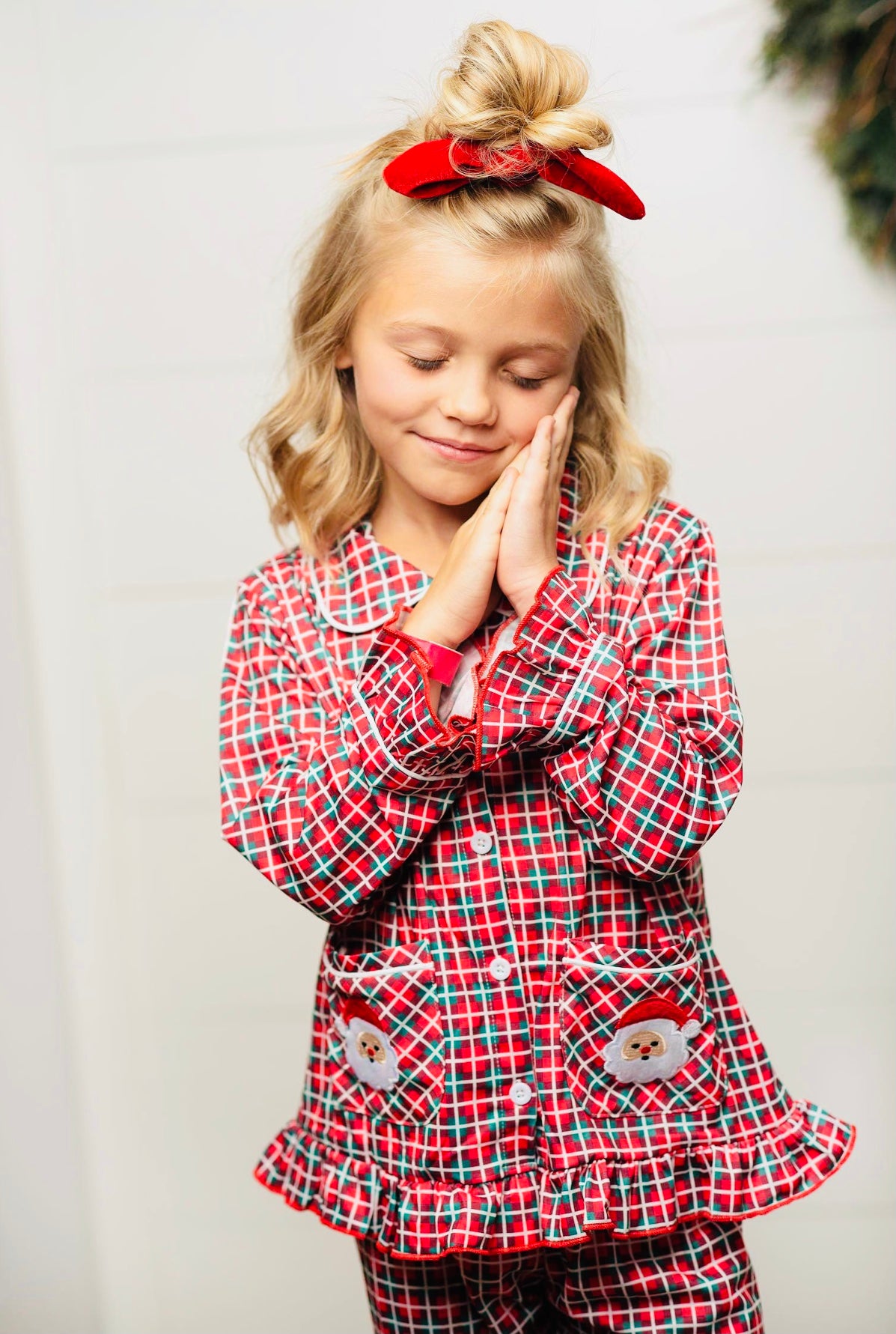 Kids Santa Plaid Pocket Button Lounge Christmas Winter Set