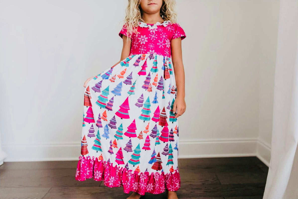 Fuchsia Tree Holiday Christmas Lounge Gown