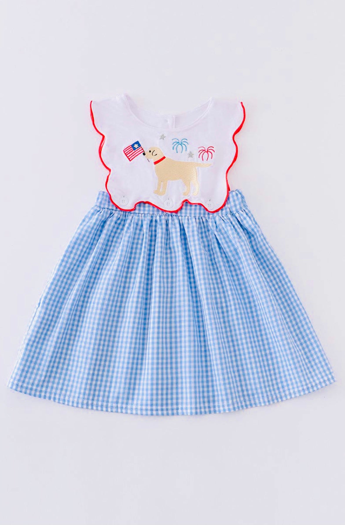 Blue Patriotic Dog Flags Embroidery Dress