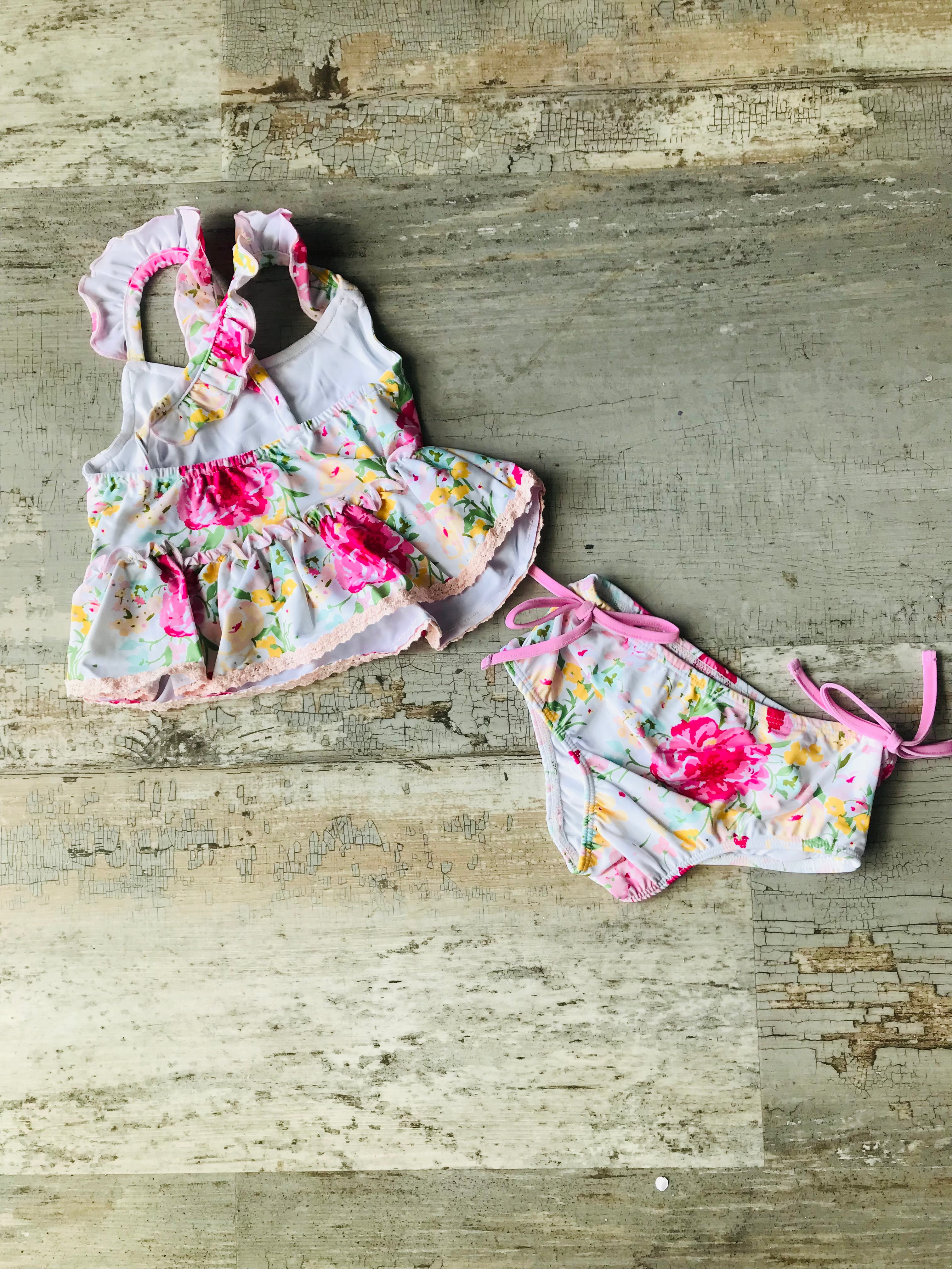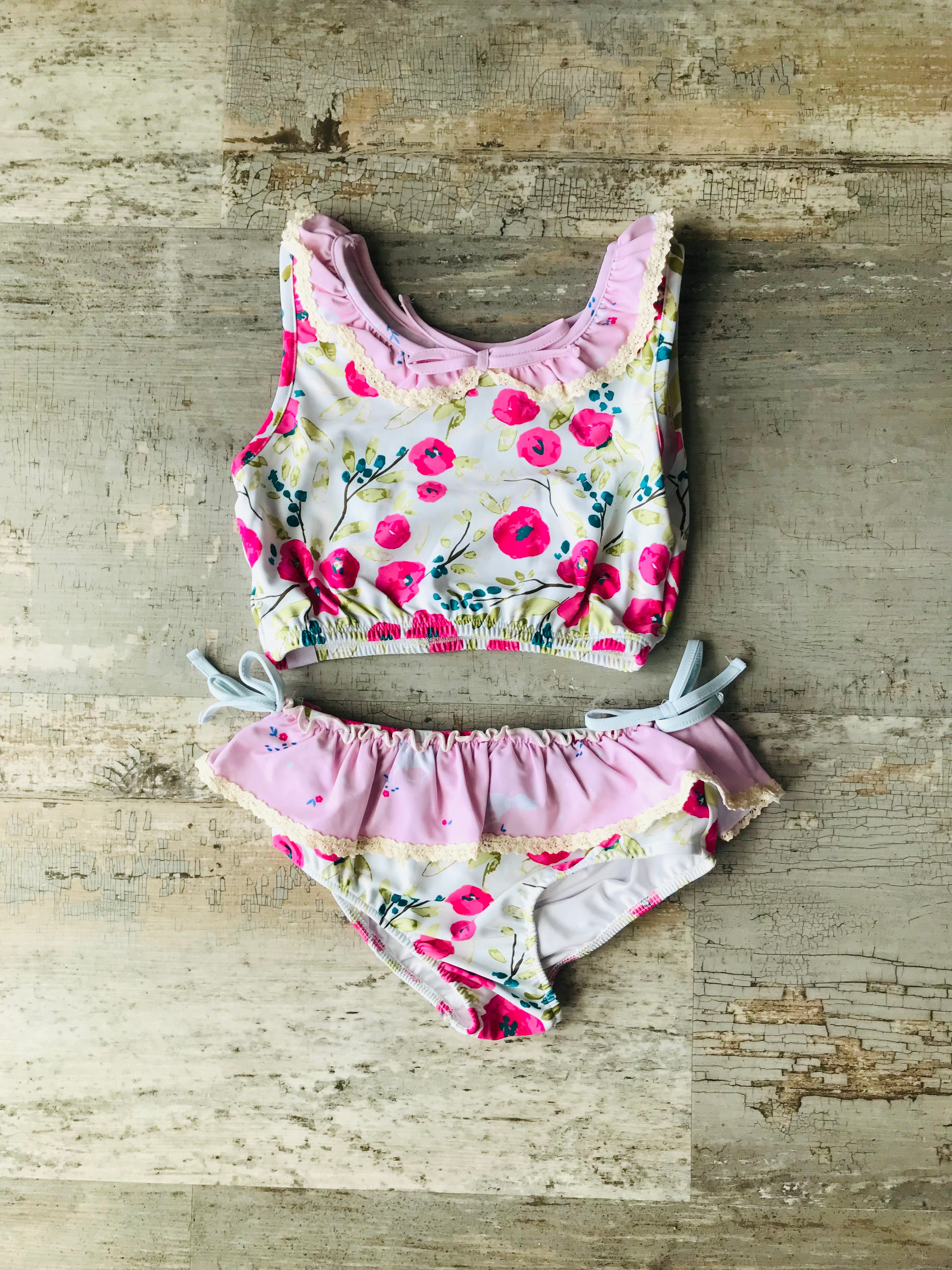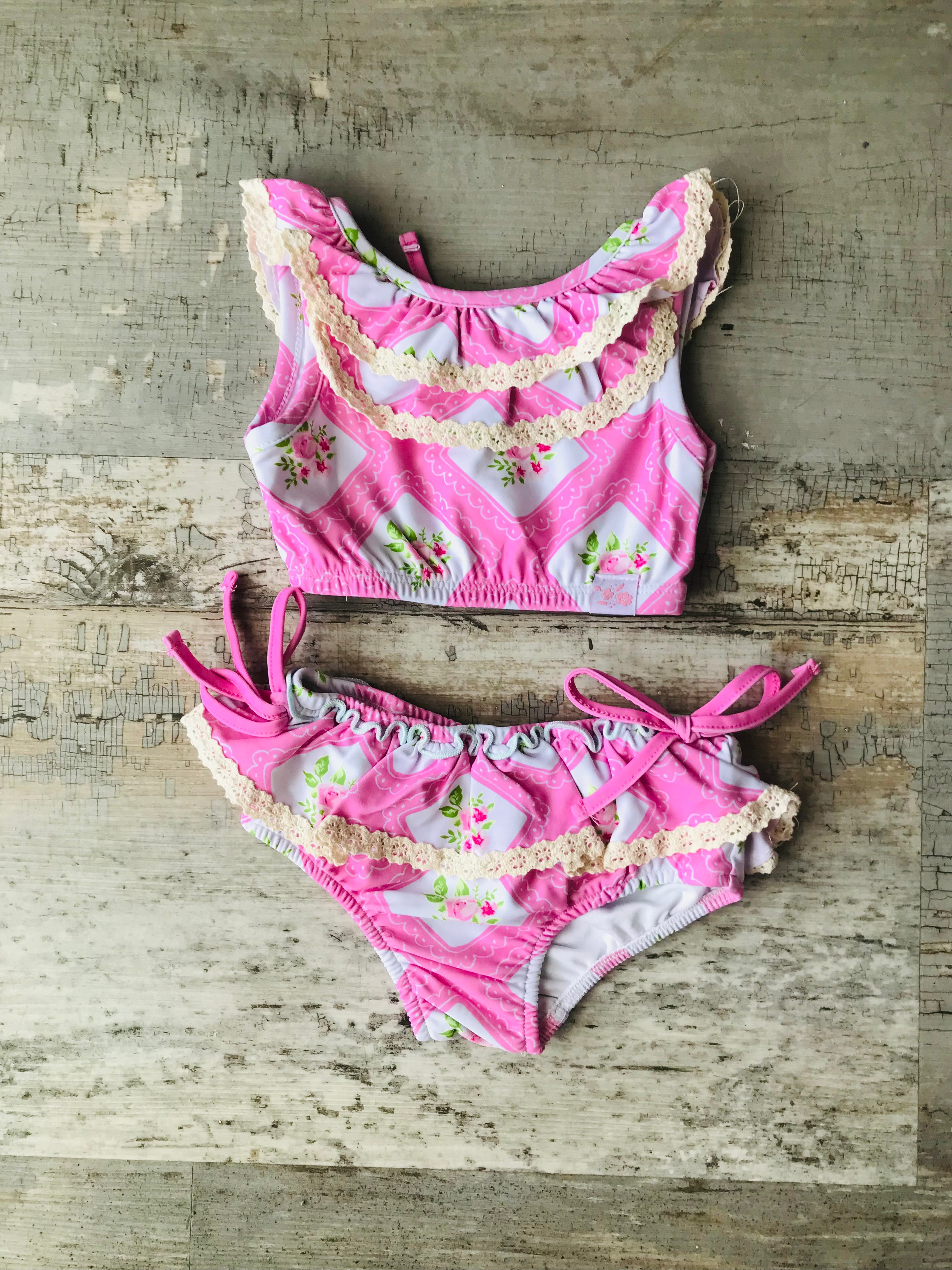 Baby Pink Floral w lace 2pc bathing suit
