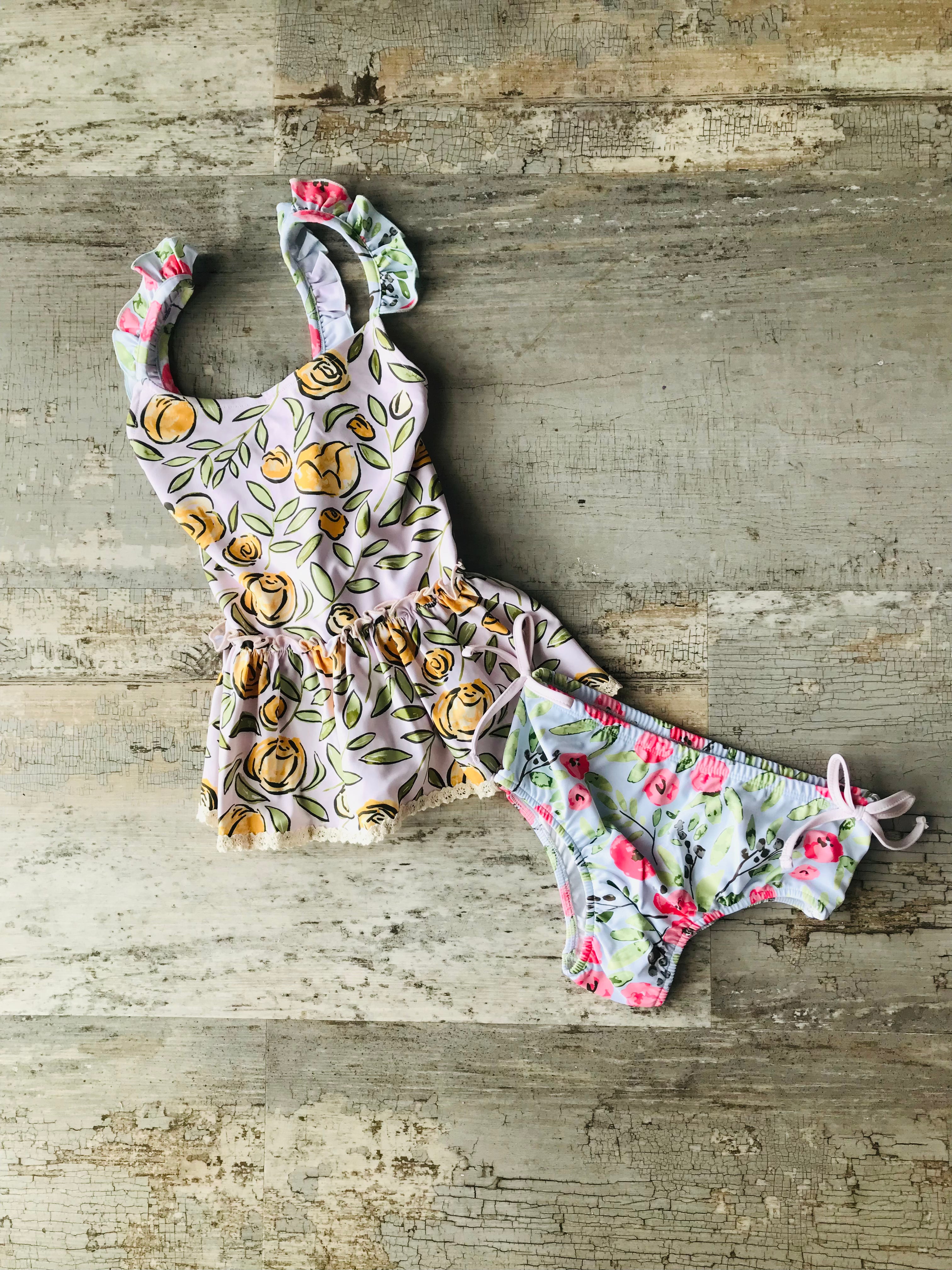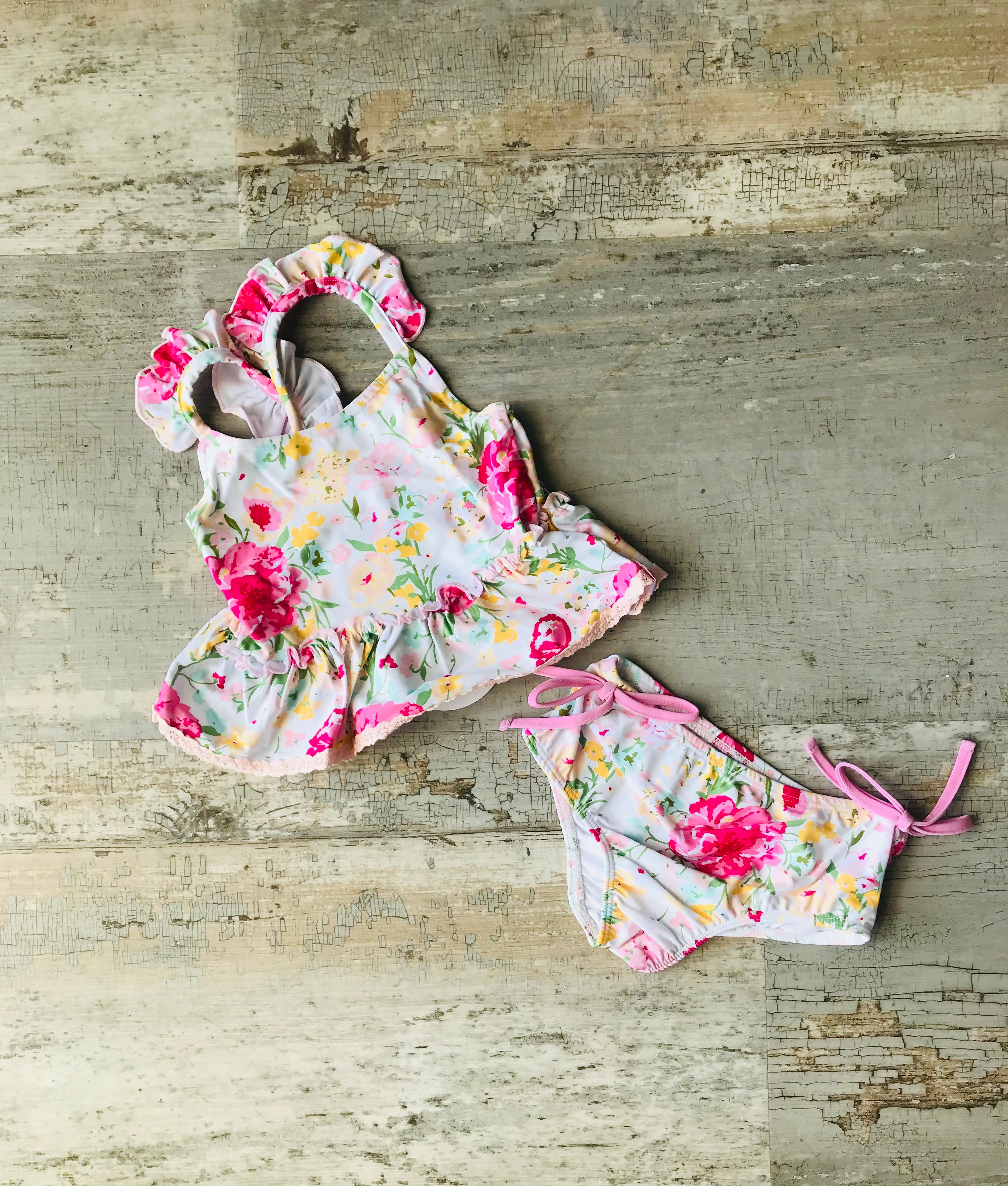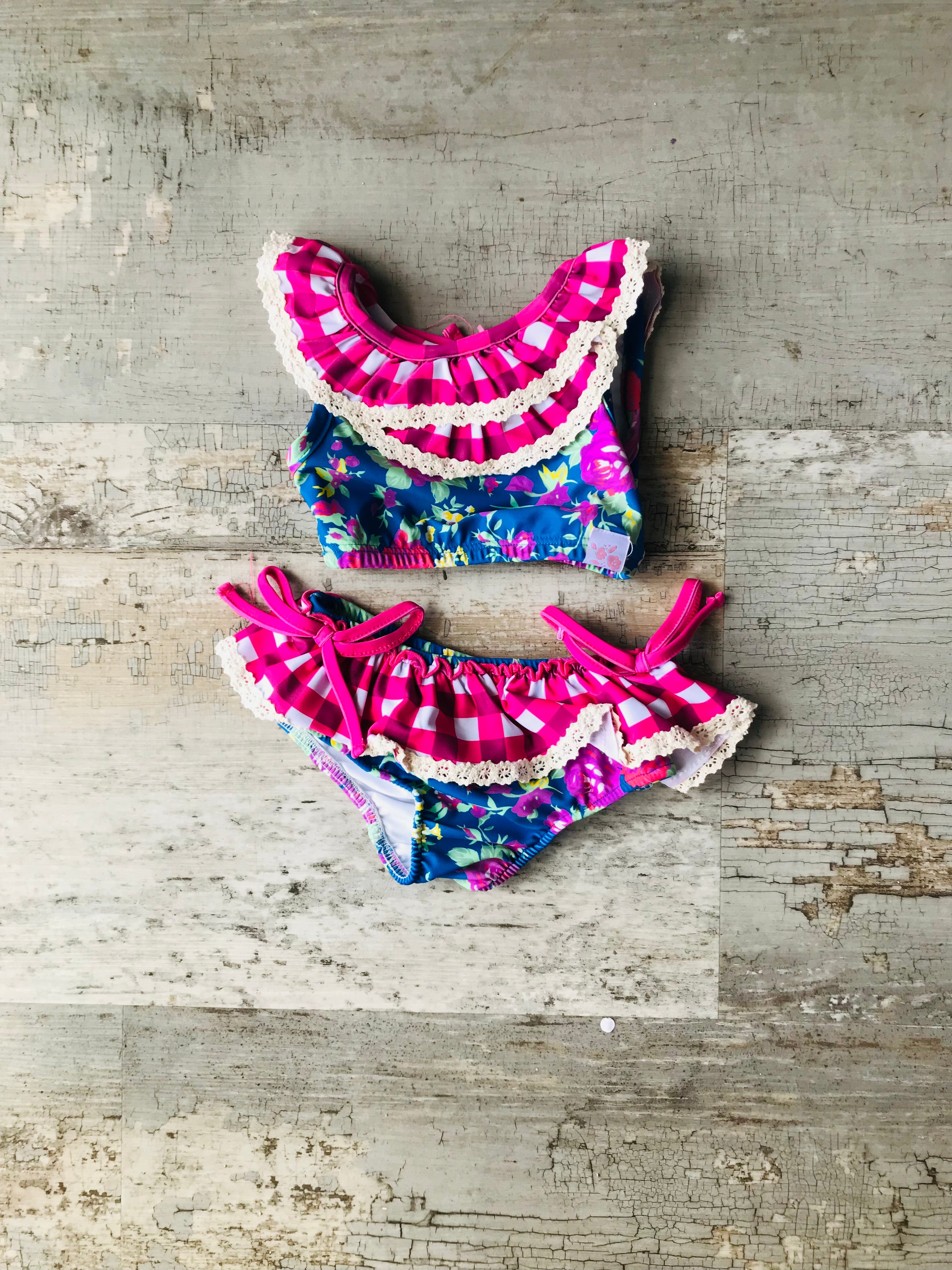 Baby Pink Floral w lace 2pc bathing suit
