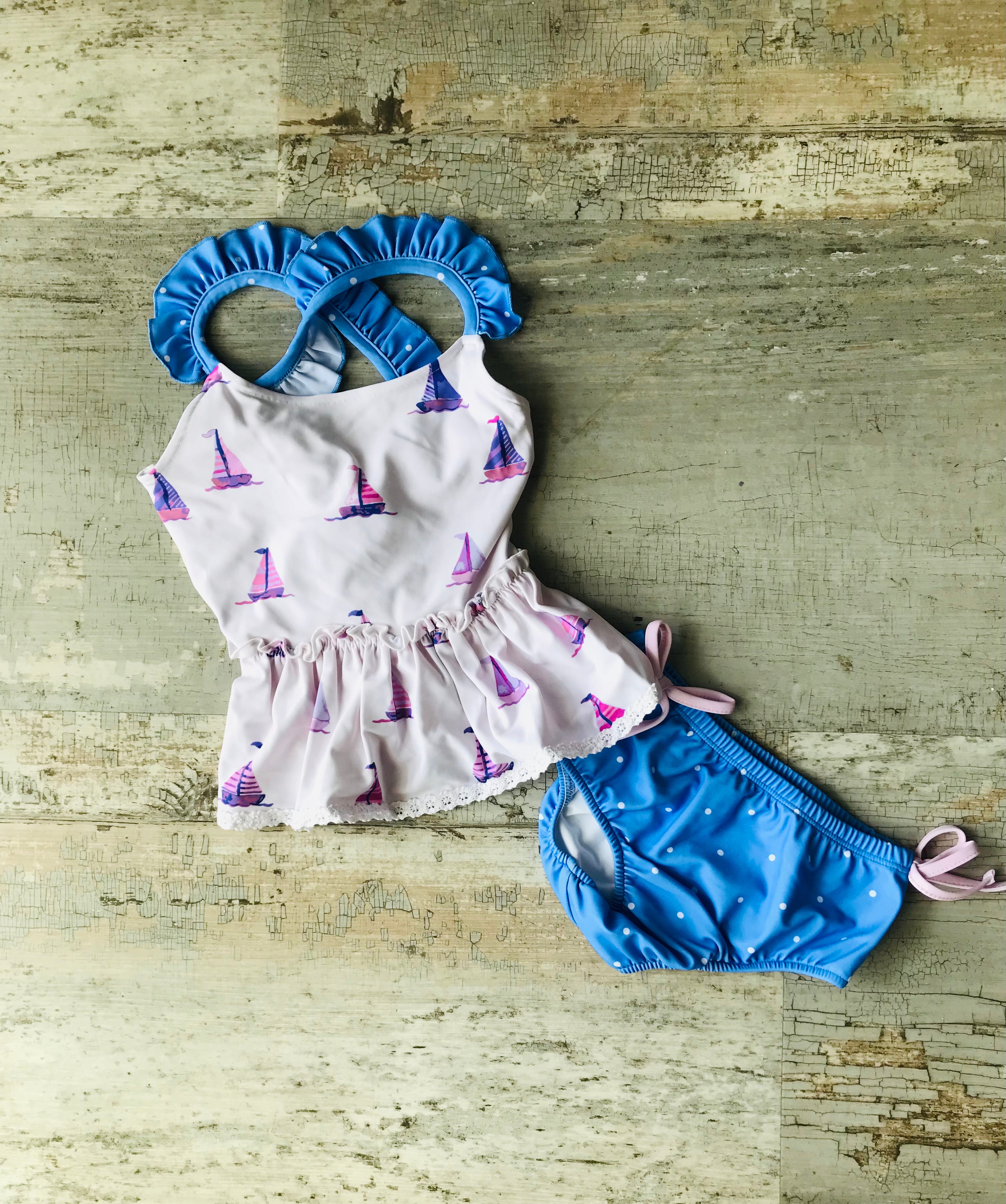 Sail Boat 2pc ruffled bathing suit