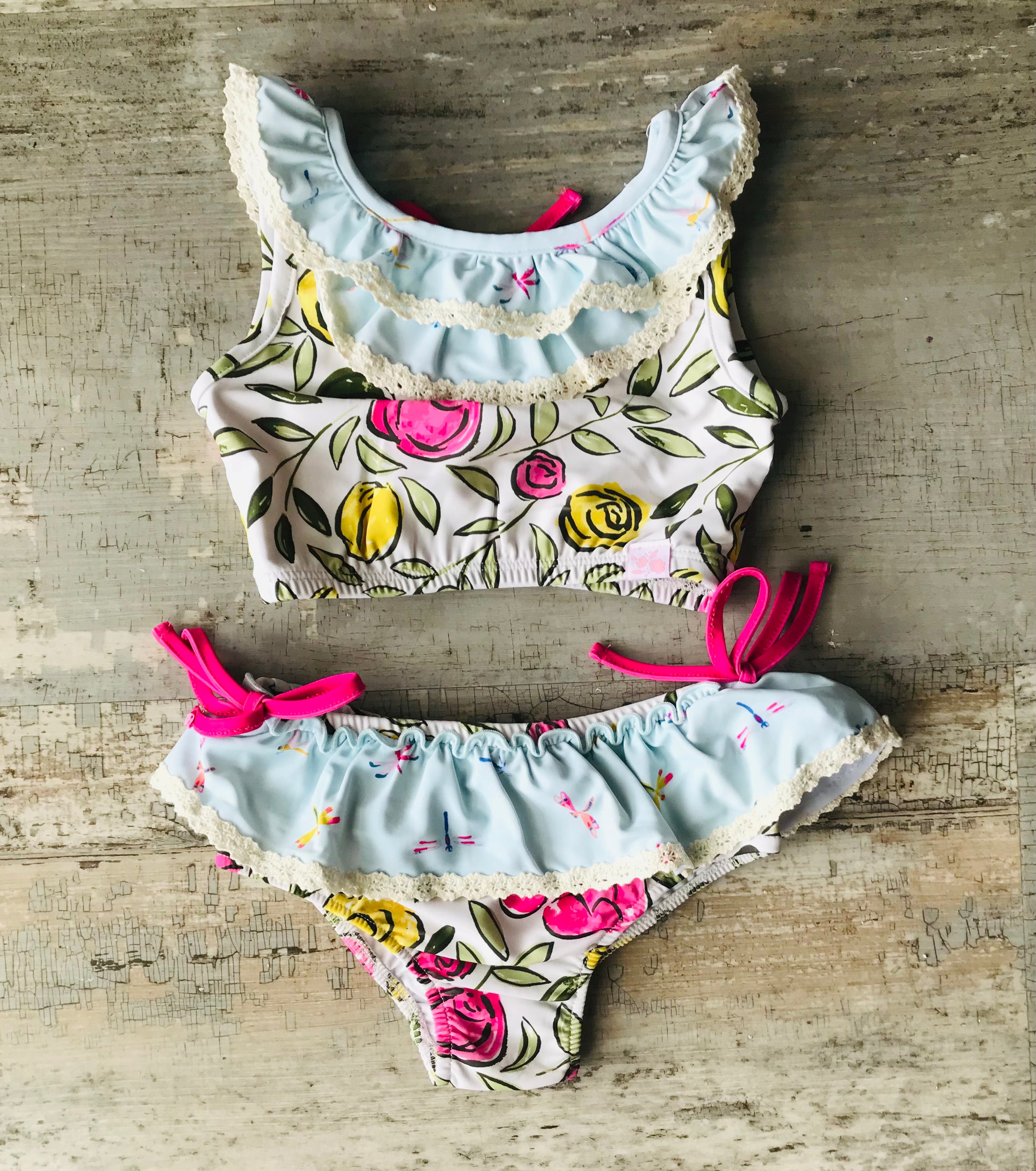 Floral Dragonfly 2pc bathing suit