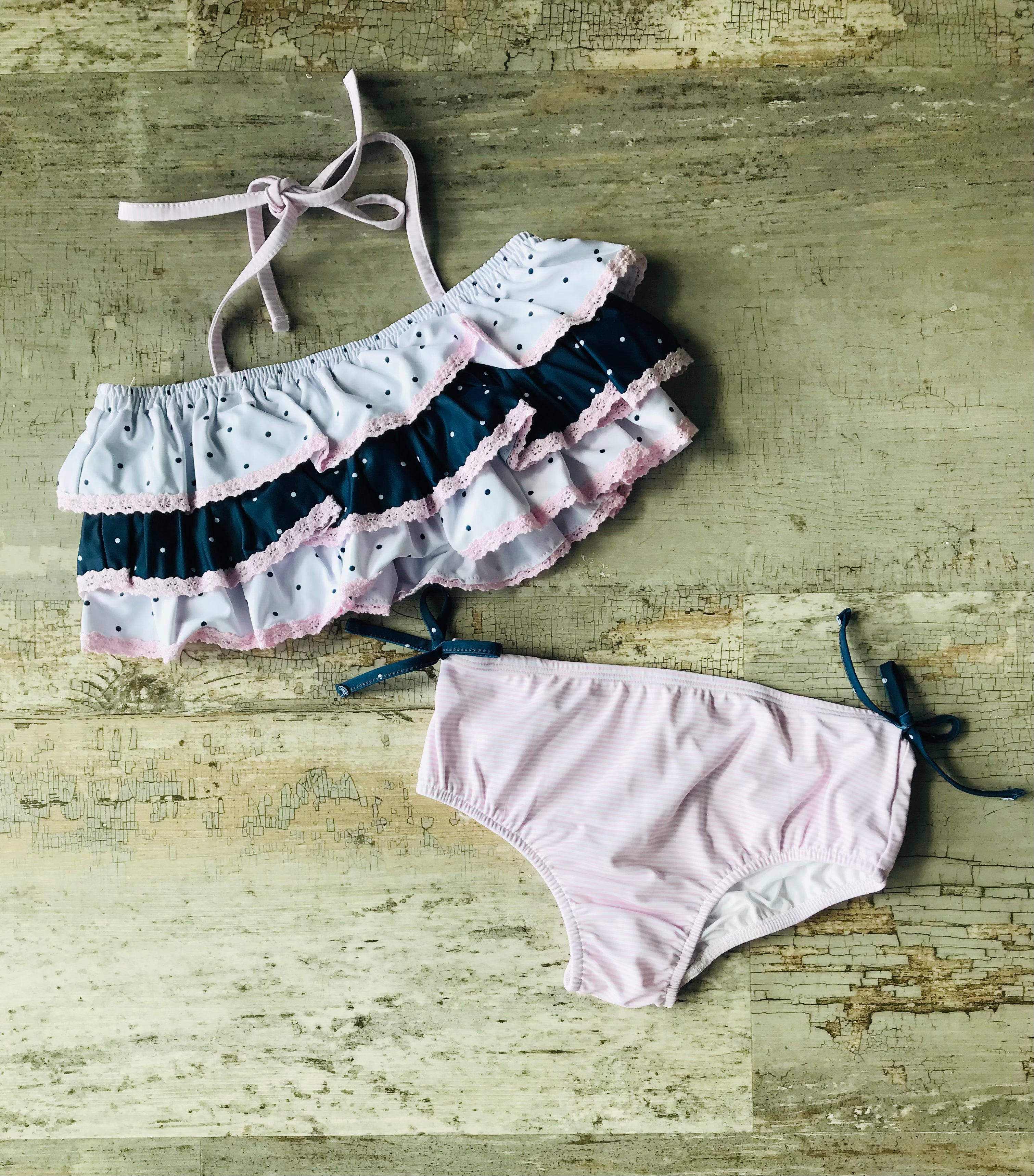 Pink and Navy Polka Dot 2pc bathing suits