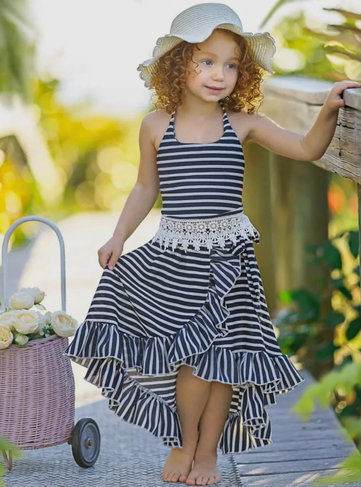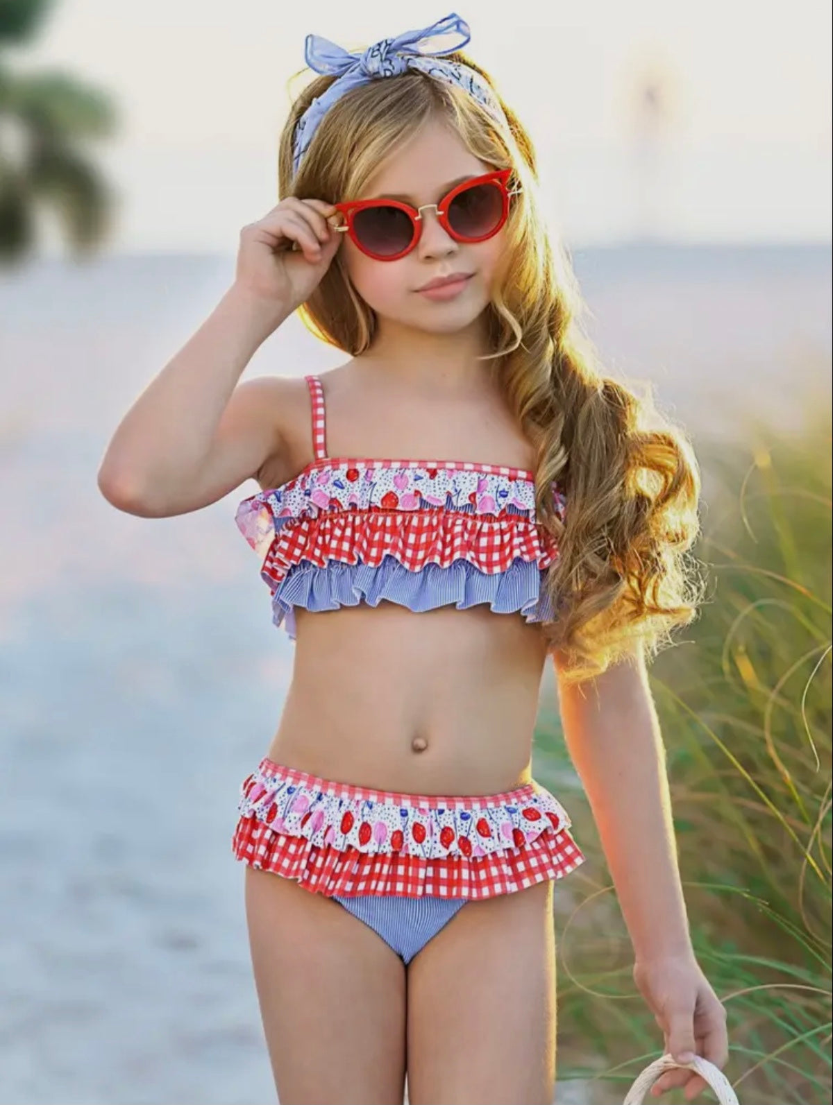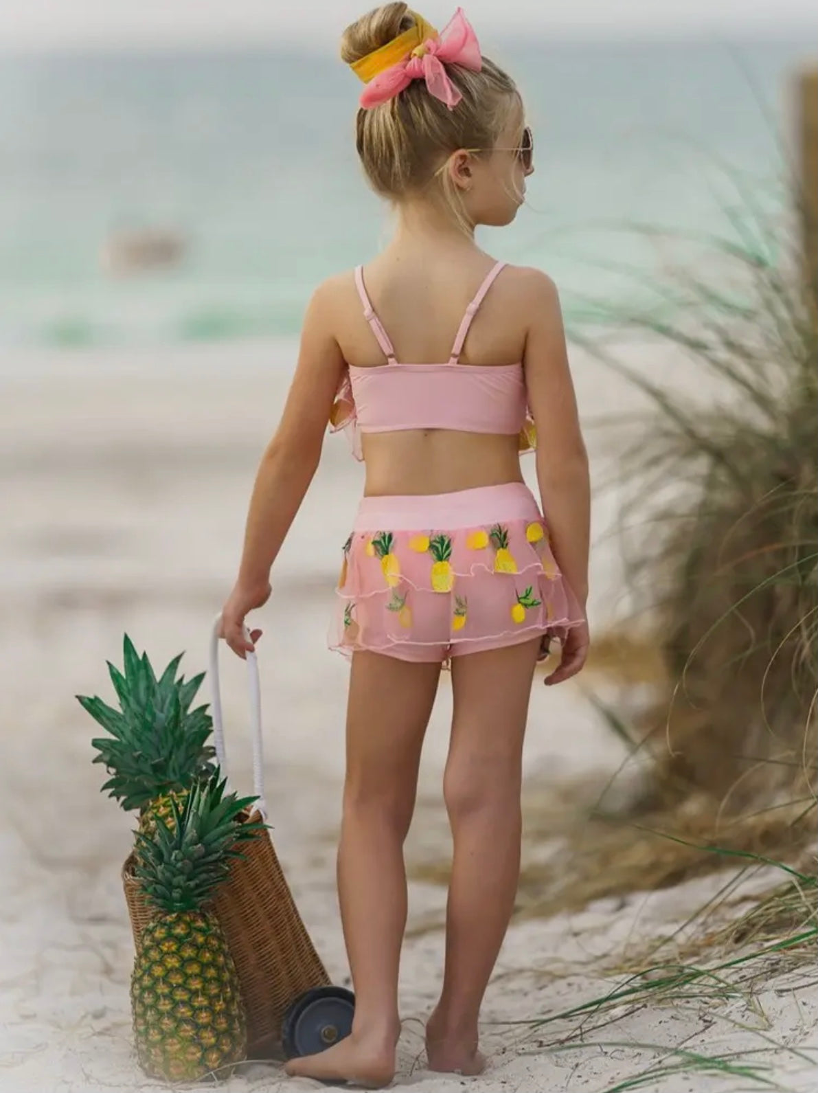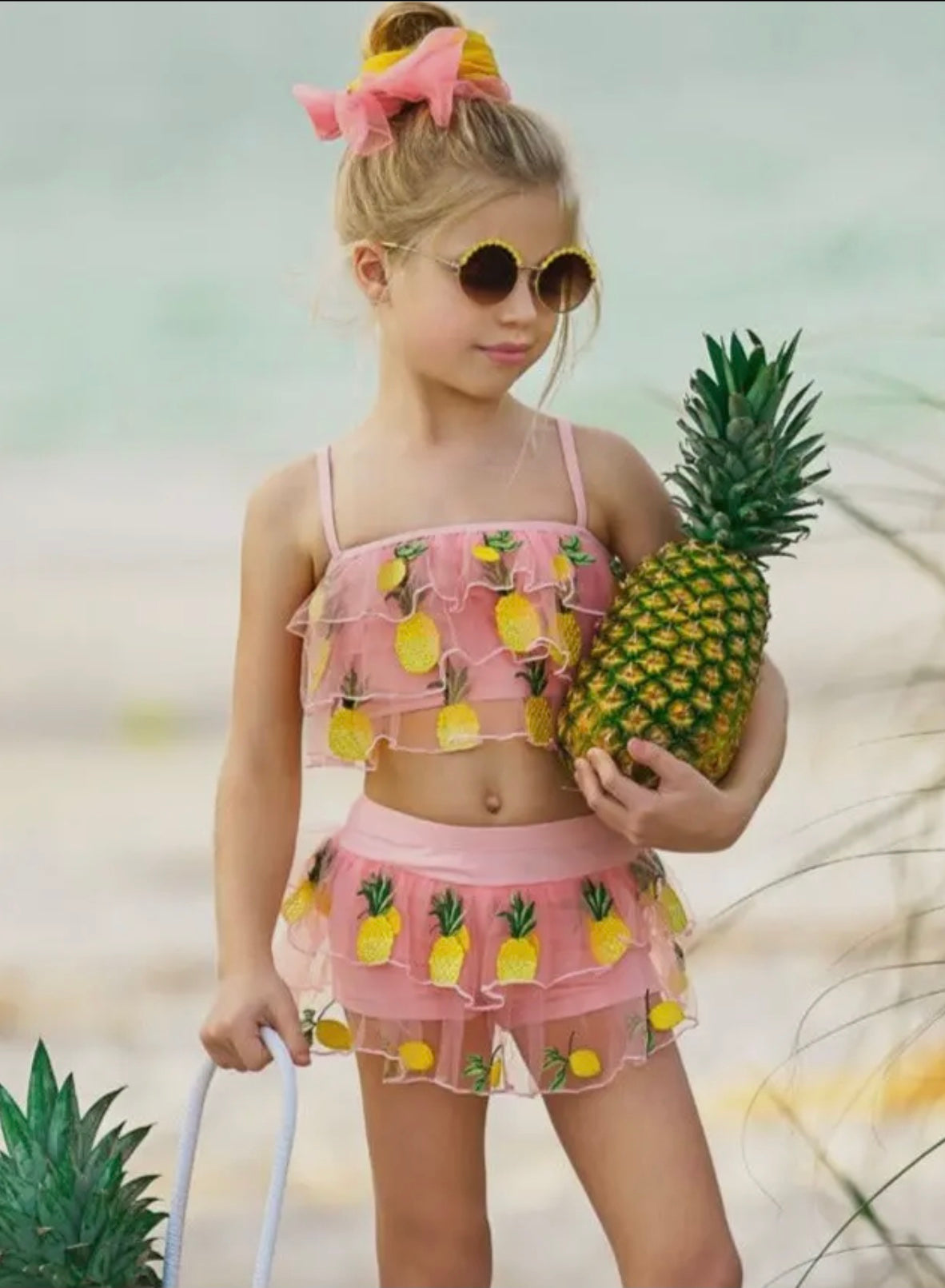 3pcs Baby Girl Sweet Ruffle Edge Swimsuit Set