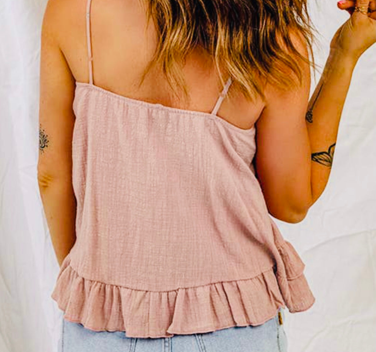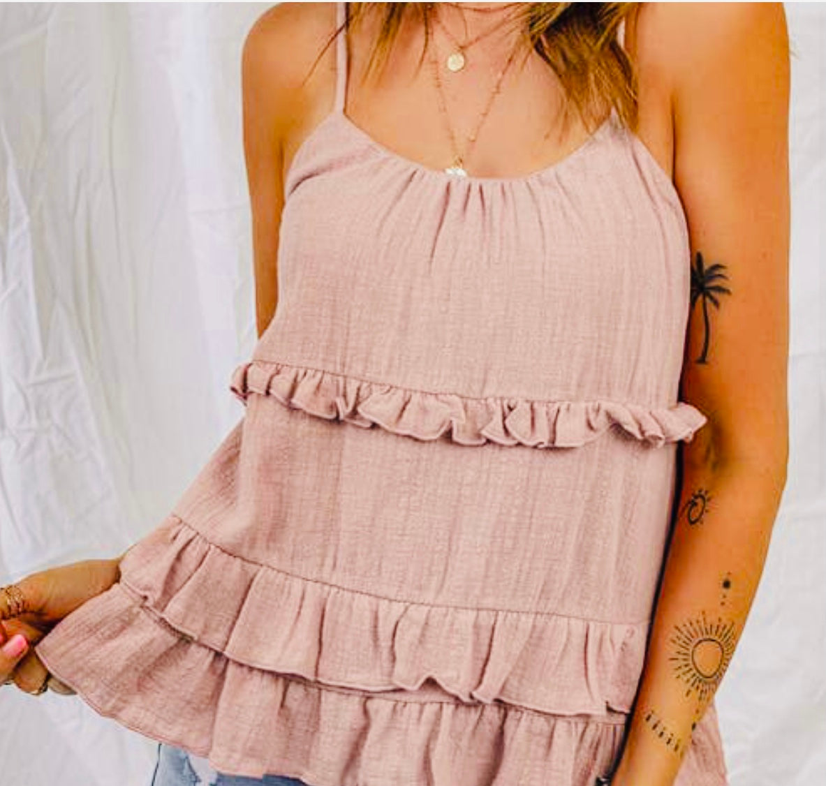 PinkTiered Ruffled Spaghetti Straps Tank Top