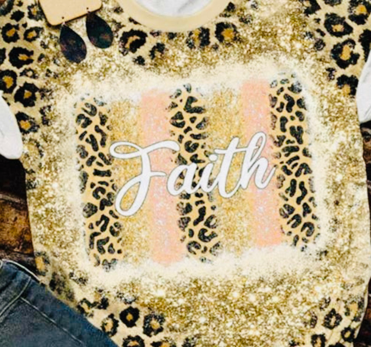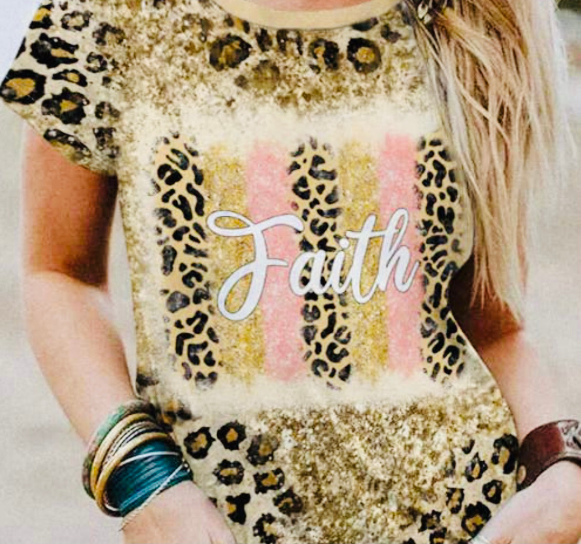 Faith Leopard Glitter Bleached O-neck T-shirt
