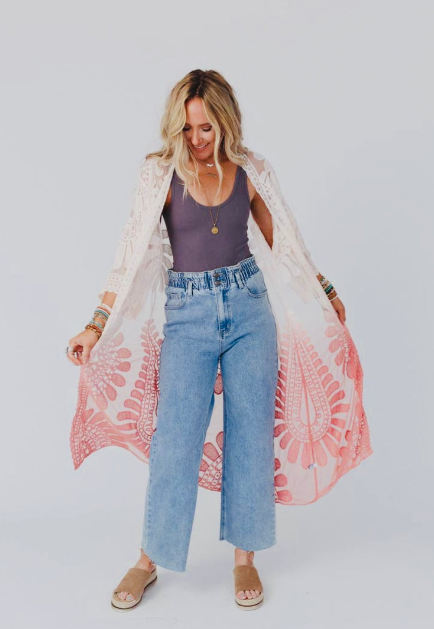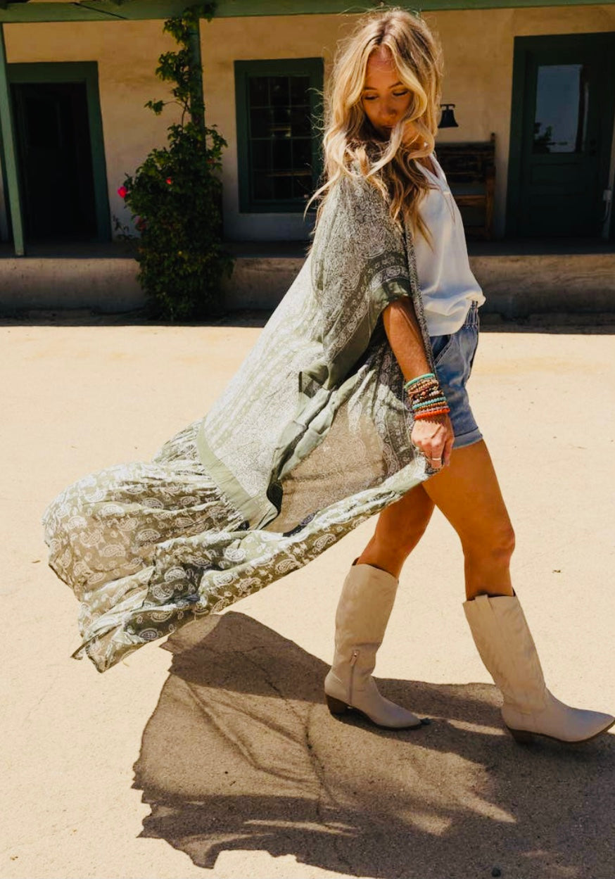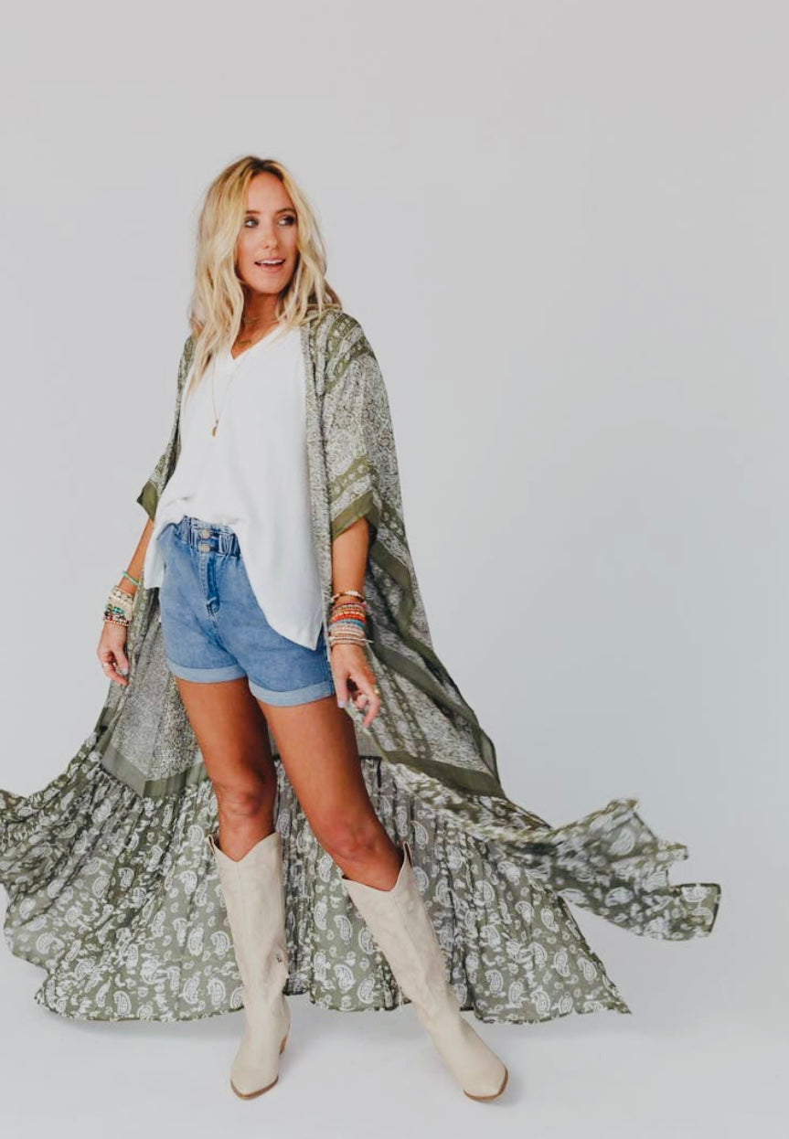Paisley Tapestry Free Flow Duster Kimono-Olive